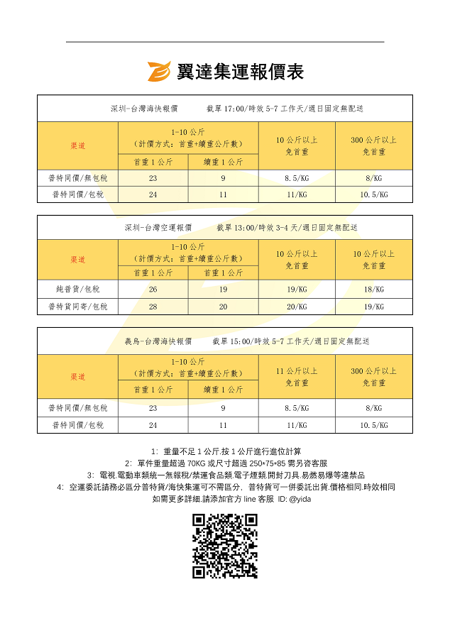 8月8日起,台灣專線,各貨倉各渠道均有降價。
